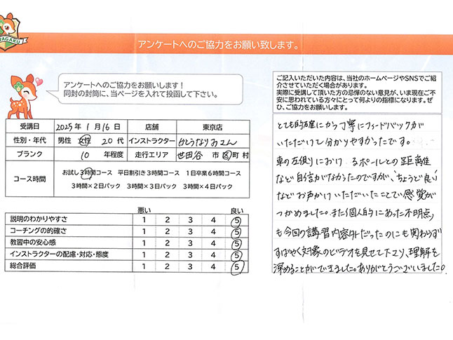 サワムラガクでは、教習後にお客様にアンケートを実施しており、