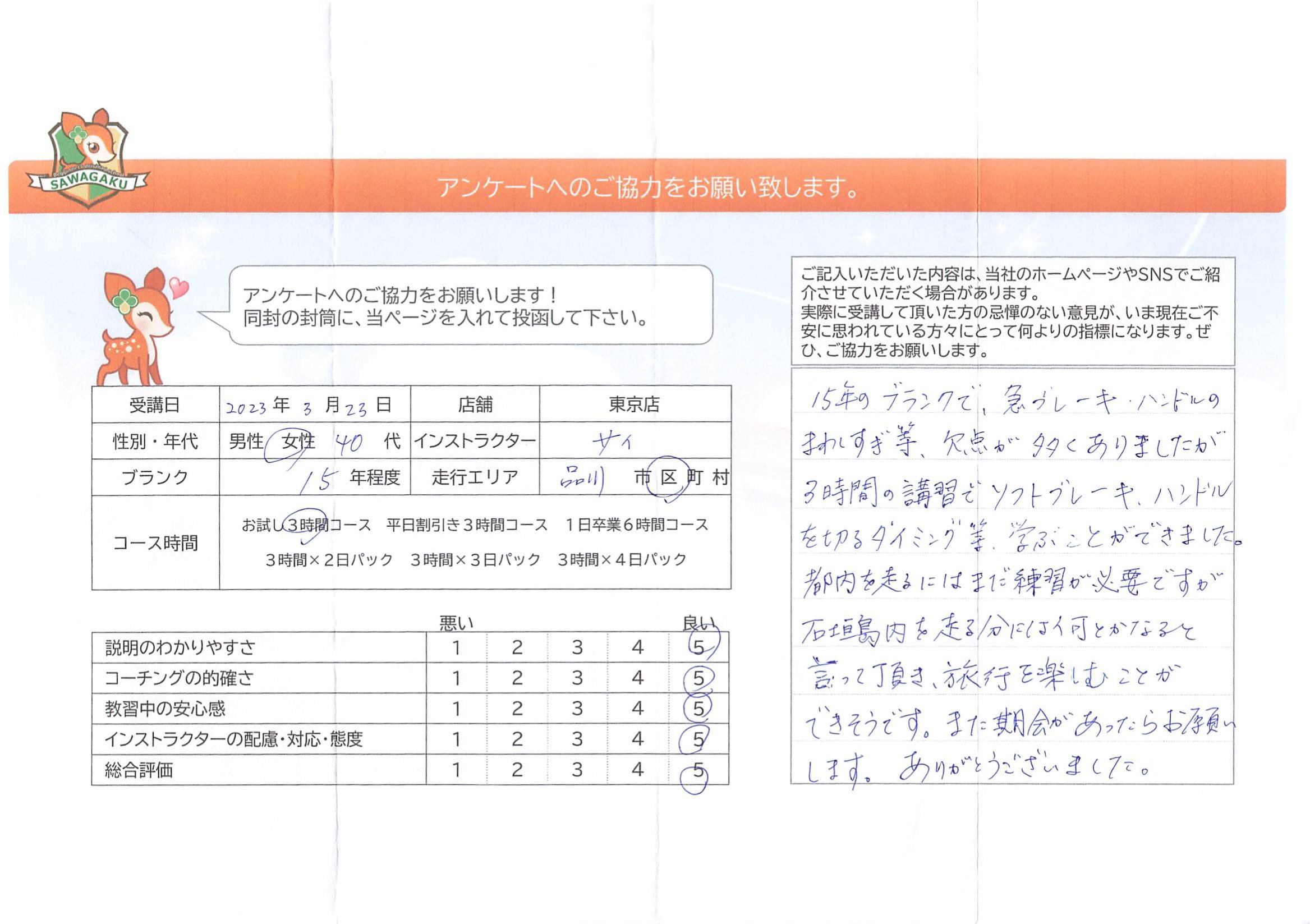 サワムラガクでは、教習後にお客様にアンケートを実施しており、